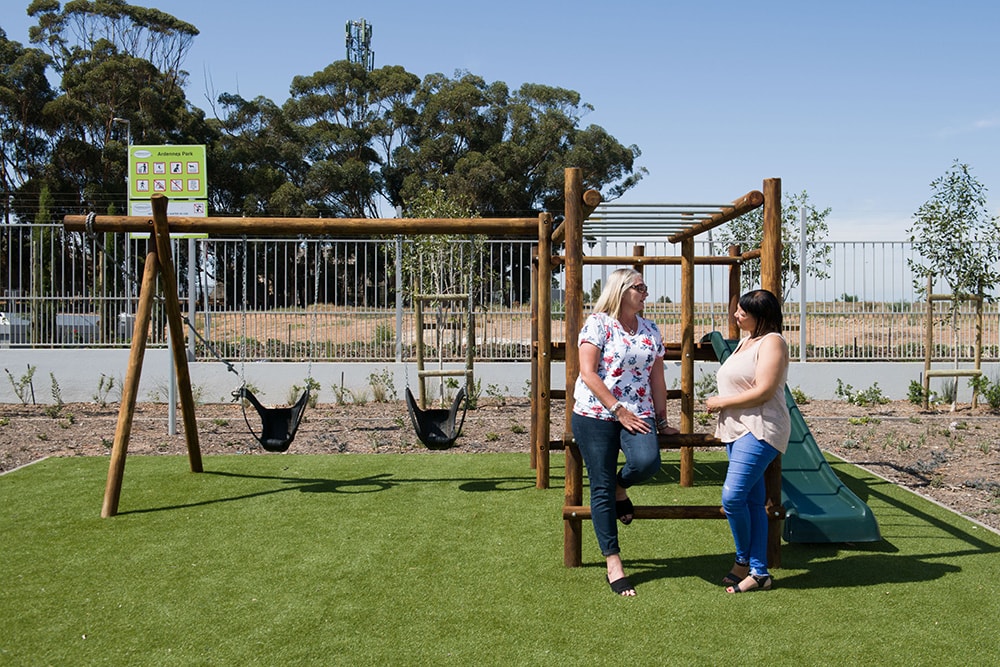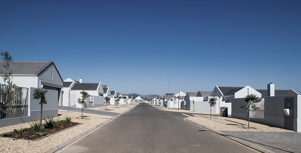 Plot sizes average a manageable 560m² and  roadside verges are dressed in stone gravel with cobble-surround planter areas to minimize maintenance and water usage.