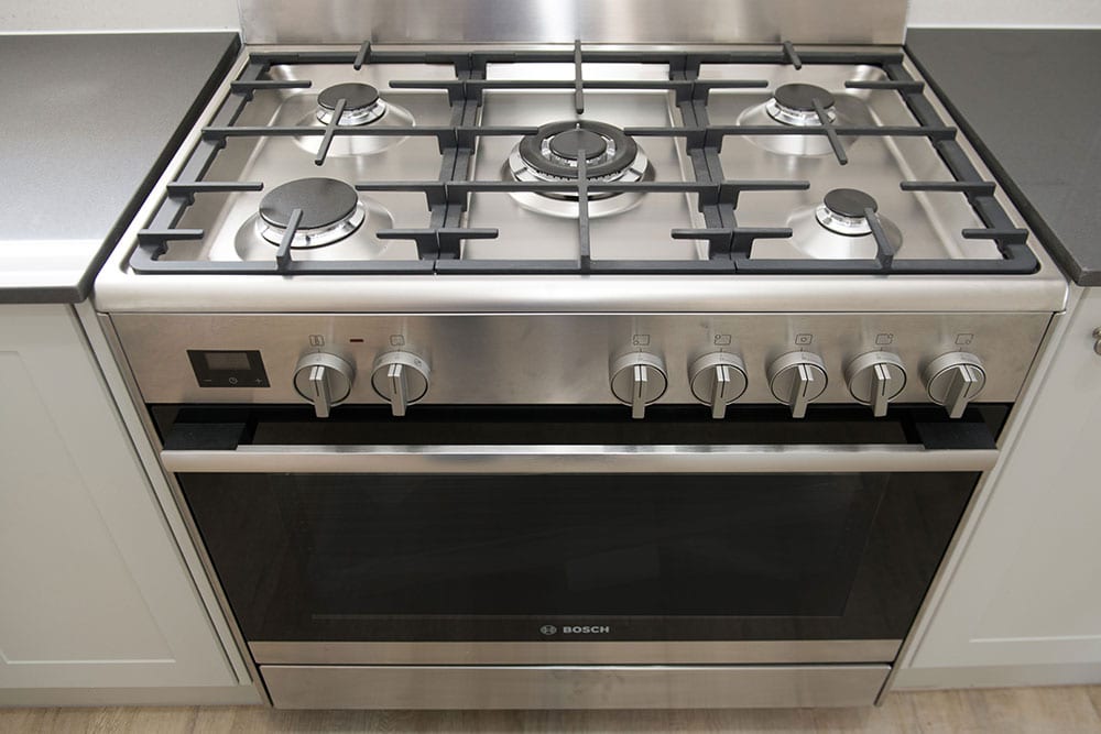 • 600mm Bosch gas hob + electric oven & cooker hood