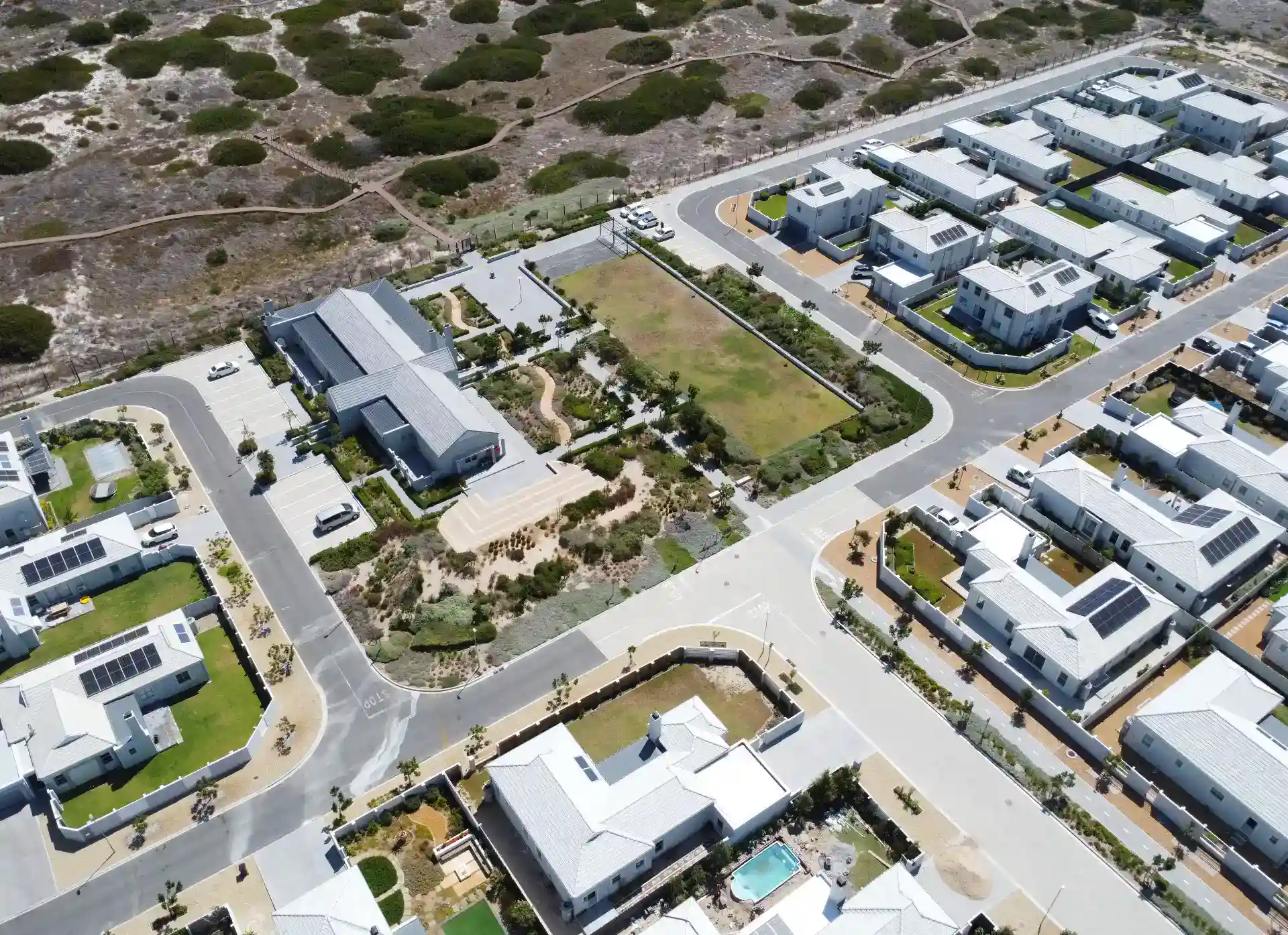 The Estate’s design to preserve biodiversity and enhance community interaction is now a reality, with features already in use, that include a 7ha conservation area to protect the dune thicket vegetation, where residents can enjoy the boardwalk, footpaths, and cycle tracks provided in this area. A multitude of open green spaces and parks for communal use, and a community zone have been established and the estate has a community clubhouse.